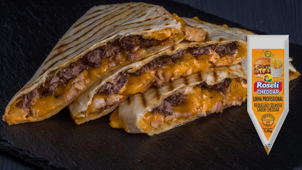 Em fogo baixo, aqueça o Requeijão Cremoso Sabor Cheddar Roseli 1,2Kg com a pimenta suave. Se desejar um molho mais fluido, adicione o leite aos poucos. Misture até ficar homogêneo e reserve. - Montagem: